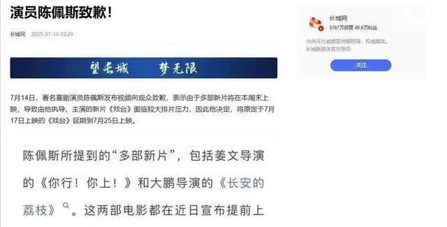 一启动点映的工夫, 《戏台》就撞上了《你行!你上》和《长安的荔枝》。 这两部电影先后通知提档之后,陈佩斯感受到排片的压力,他一看这架势不太对,便将档期从原定的7月17日推迟到7月25日。 因为倏得改档期, 陈佩斯还出奇录制了视频说念歉,让等了32年的不雅众再多等一周。