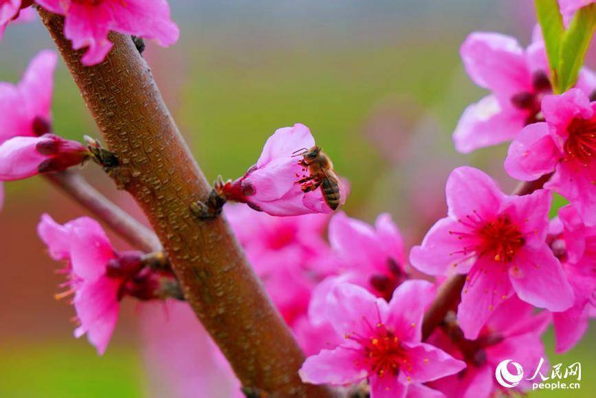 桃花盛放,枝繁色艳。东说念主民网 程明辉摄