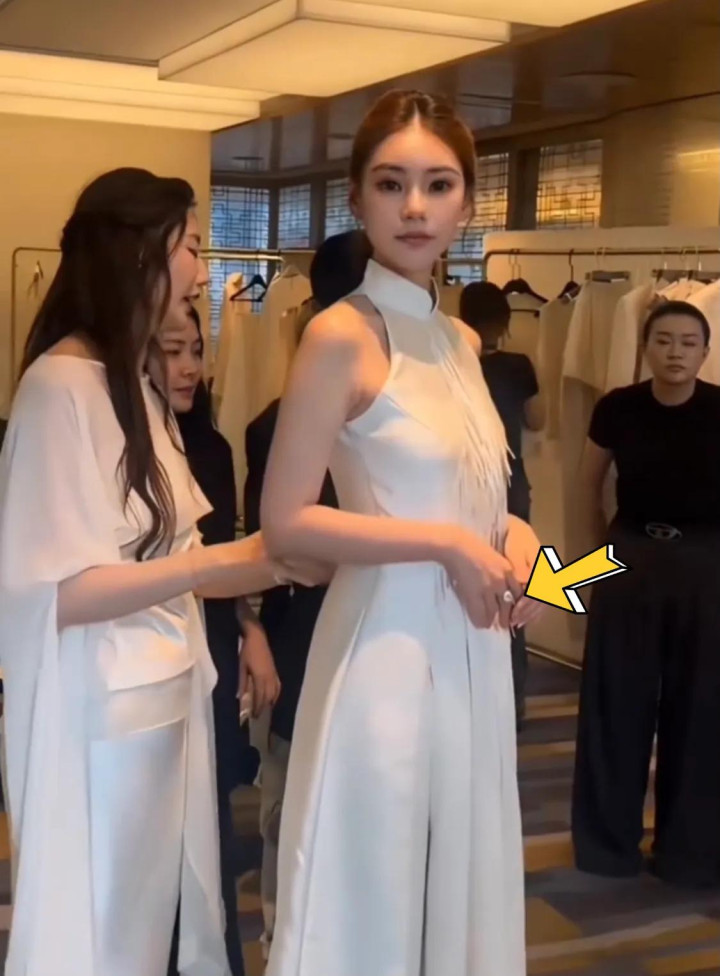 马筱梅手上戴了一只鸽子蛋的钻石适度,她这身穿搭挺朴素的,莫得戴耳环也莫得戴项链,只为了突显打算师的打算,她情商很高。