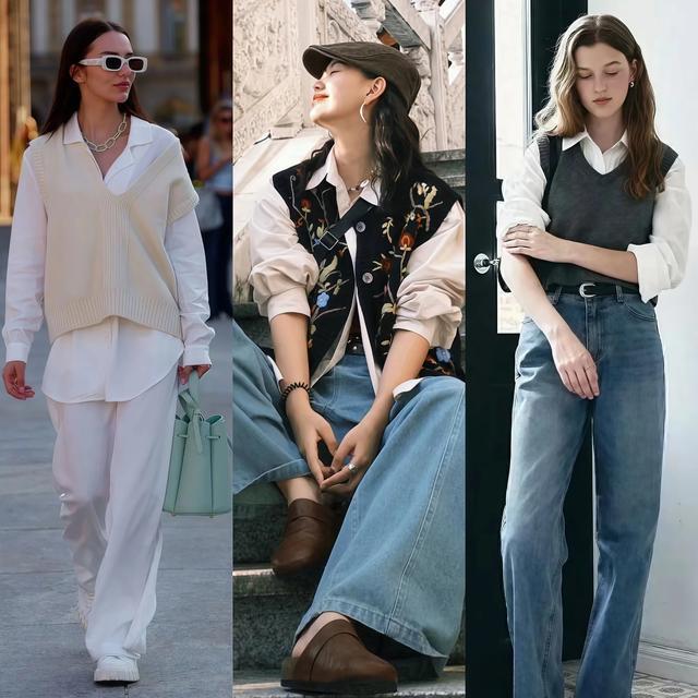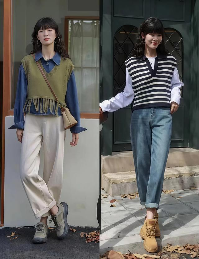 tips1:相沿文艺风=马甲+衬衫+牛仔裤