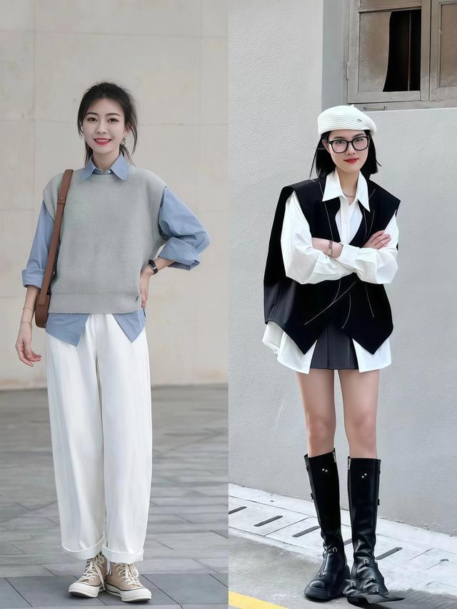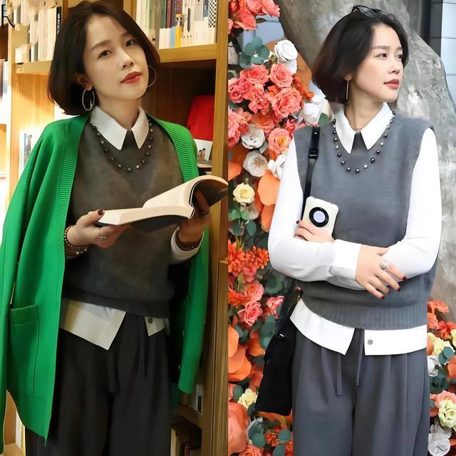玄色、灰色、白色这几个经典色马甲,任性搭什么衬衫齐不翻车,日常通勤闭眼穿就行,刚驱动尝试马甲叠穿的女生先从经典色起头,出错概率最低。